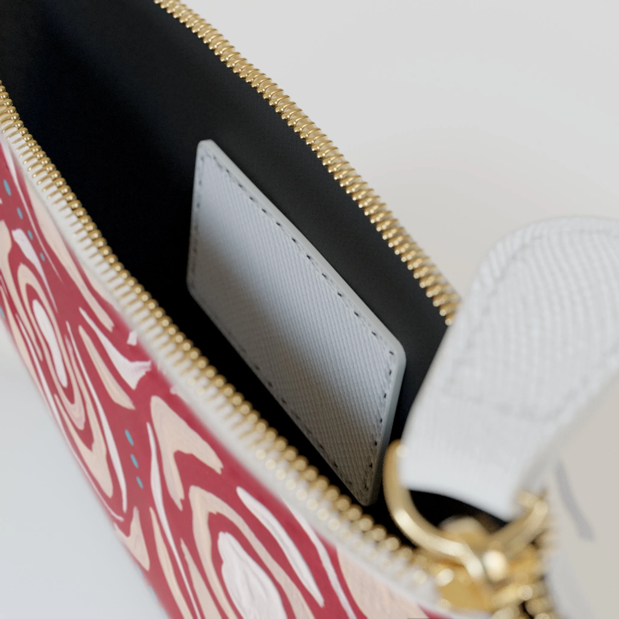 Designed to be chic and highly portable, this mini personalized clutch bag is made for the fashionista on the go. It can hold everyday essentials such as a phone, a wallet, and keys. It features a zip fastener and it is made of vegan, cruelty-free leather that can accommodate you.