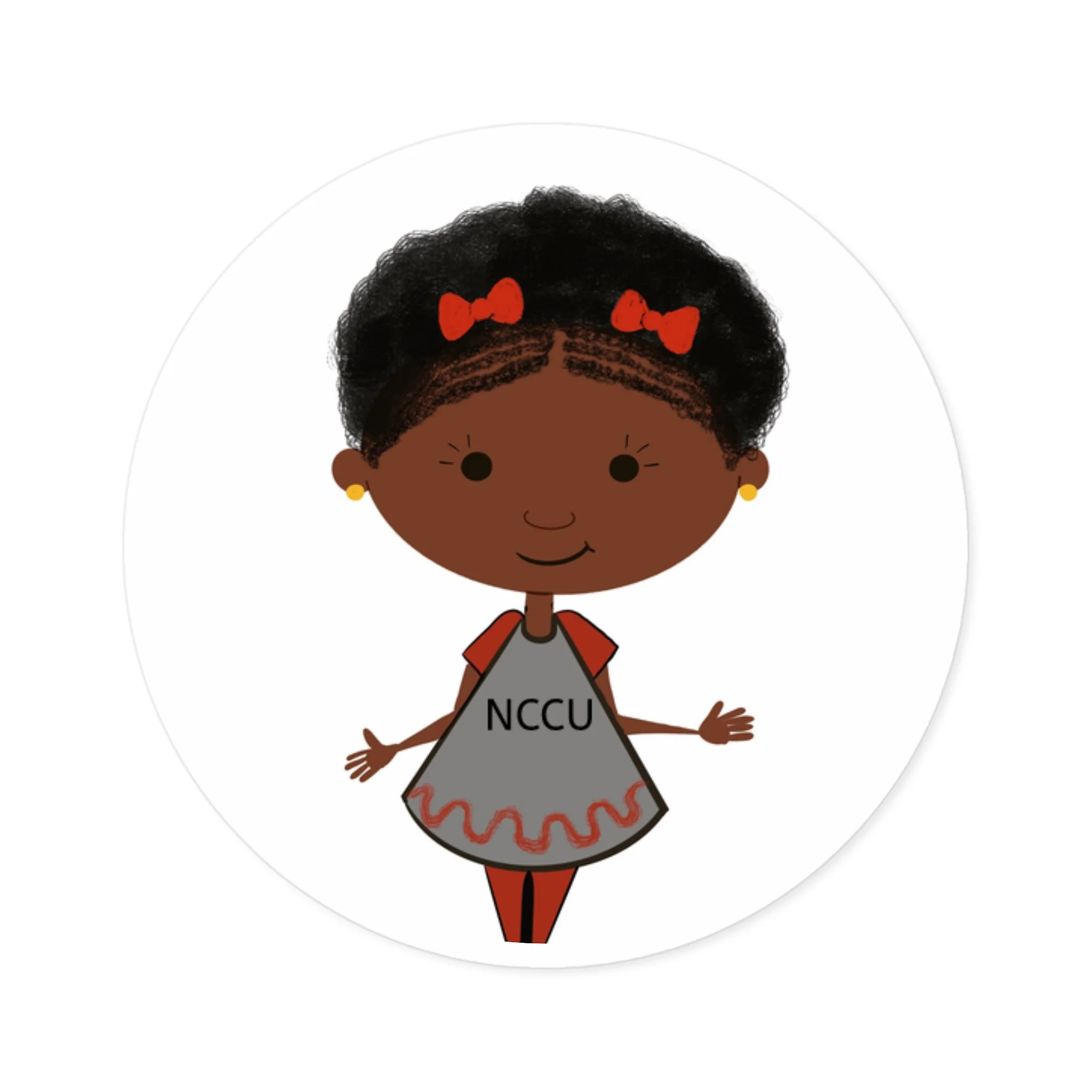 These delightful Round Stickers bring a pop of color, black girl magic, NCCU pride, and personality to your life! Perfect for personalizing your laptop, water bottle, or planner, they radiate joy and creativity. Made from premium vinyl, these stickers are not only vibrant but also incredibly durable, making them a fantastic choice for all your indoor and outdoor adventures. They are ideal for anyone who loves unique designs and wants to add a personal touch to their belongings. These stickers are perfect for gifting during holidays, celebrations, and special occasions, adding a fun element to birthdays, back-to-school, or simply to uplift your everyday life.