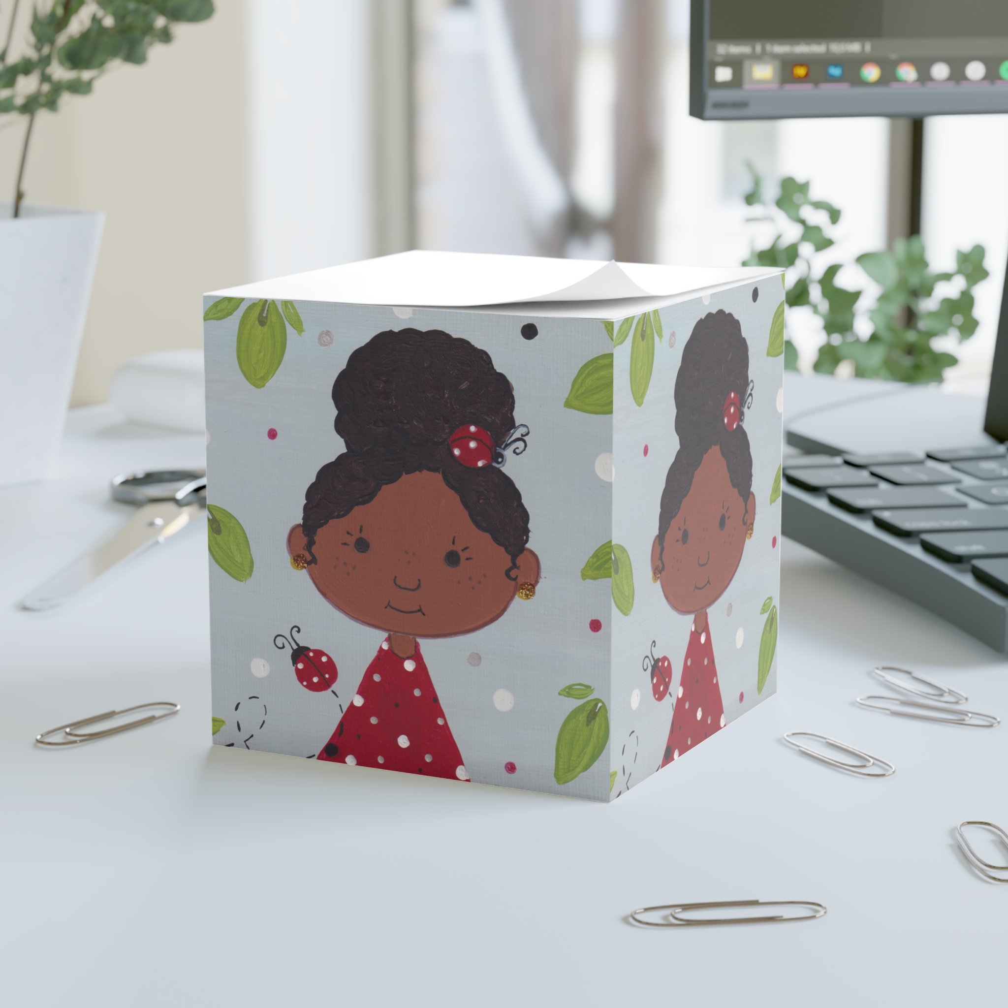 When Too Cute Creativity  meets clever design, the custom sticky note cube is born. This sticky note cube features 700 sticky sheets for you to conveniently take notes on.  Adorn your office, workspace, and/or classroom with this amazing design. from the Too Cute Lil Cutie Collection by Sharon S. Davis.