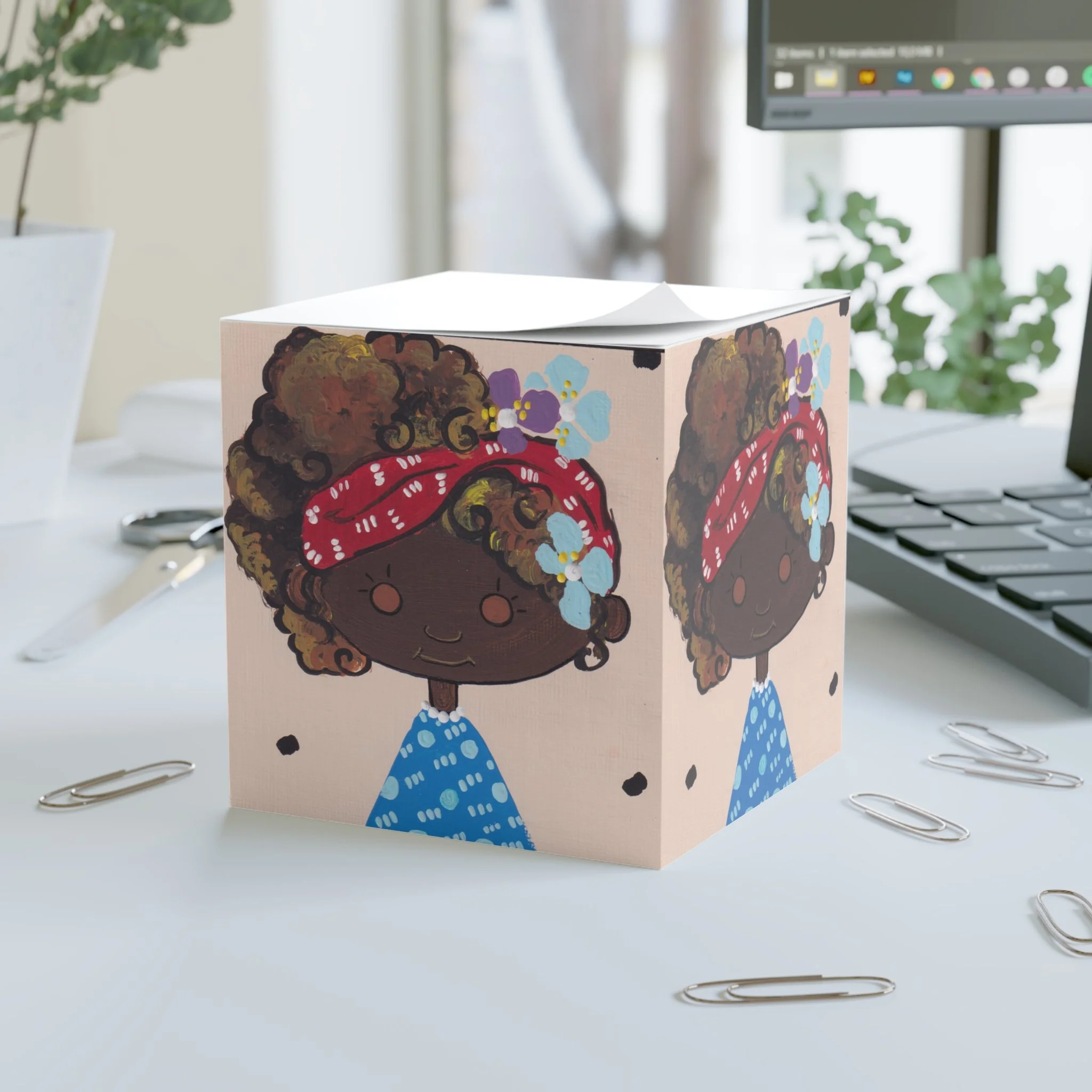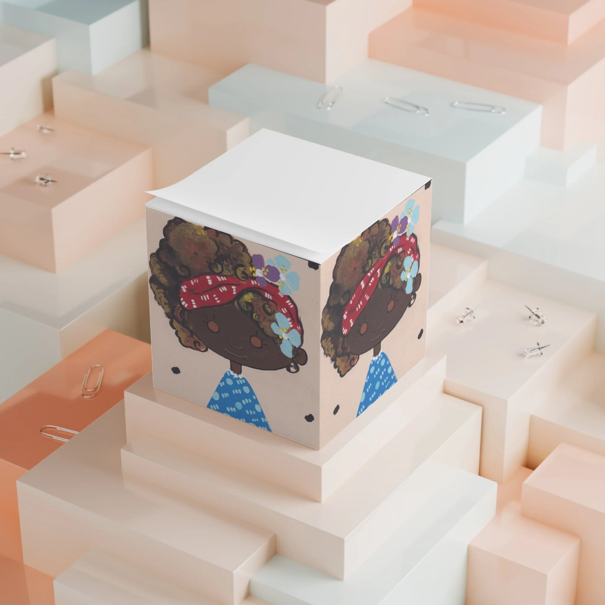 When Too Cute Creativity  meets clever design, the custom sticky note cube is born. This sticky note cube features 700 sticky sheets for you to conveniently take notes on.  Adorn your office, workspace, and/or classroom with this amazing design. from the Too Cute Lil Cutie Collection by Sharon S. Davis.